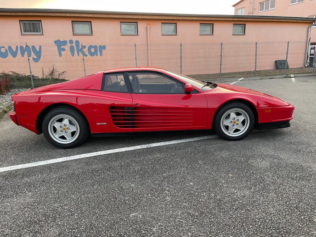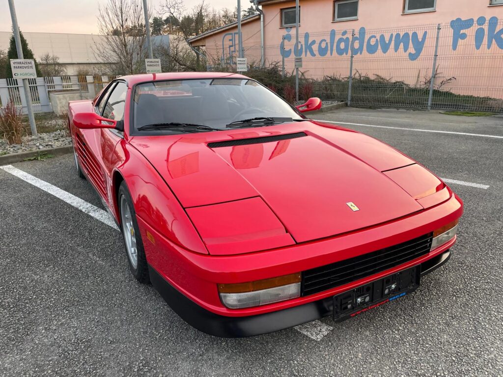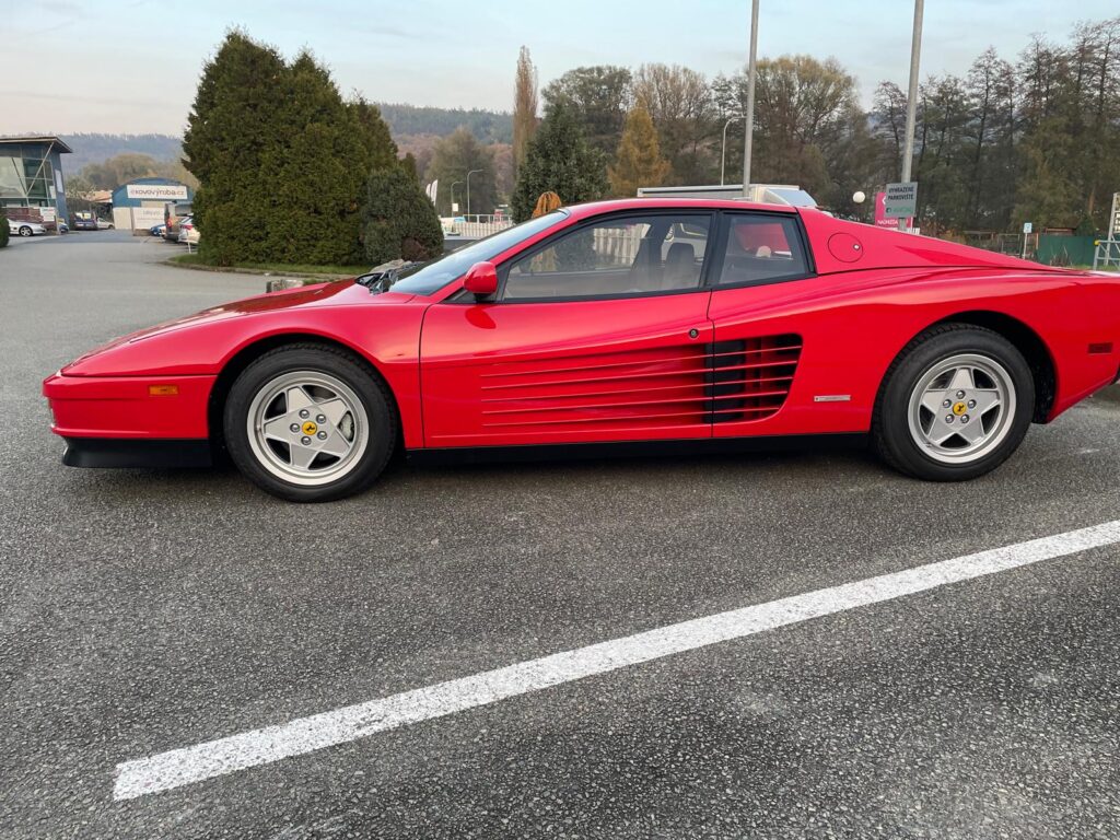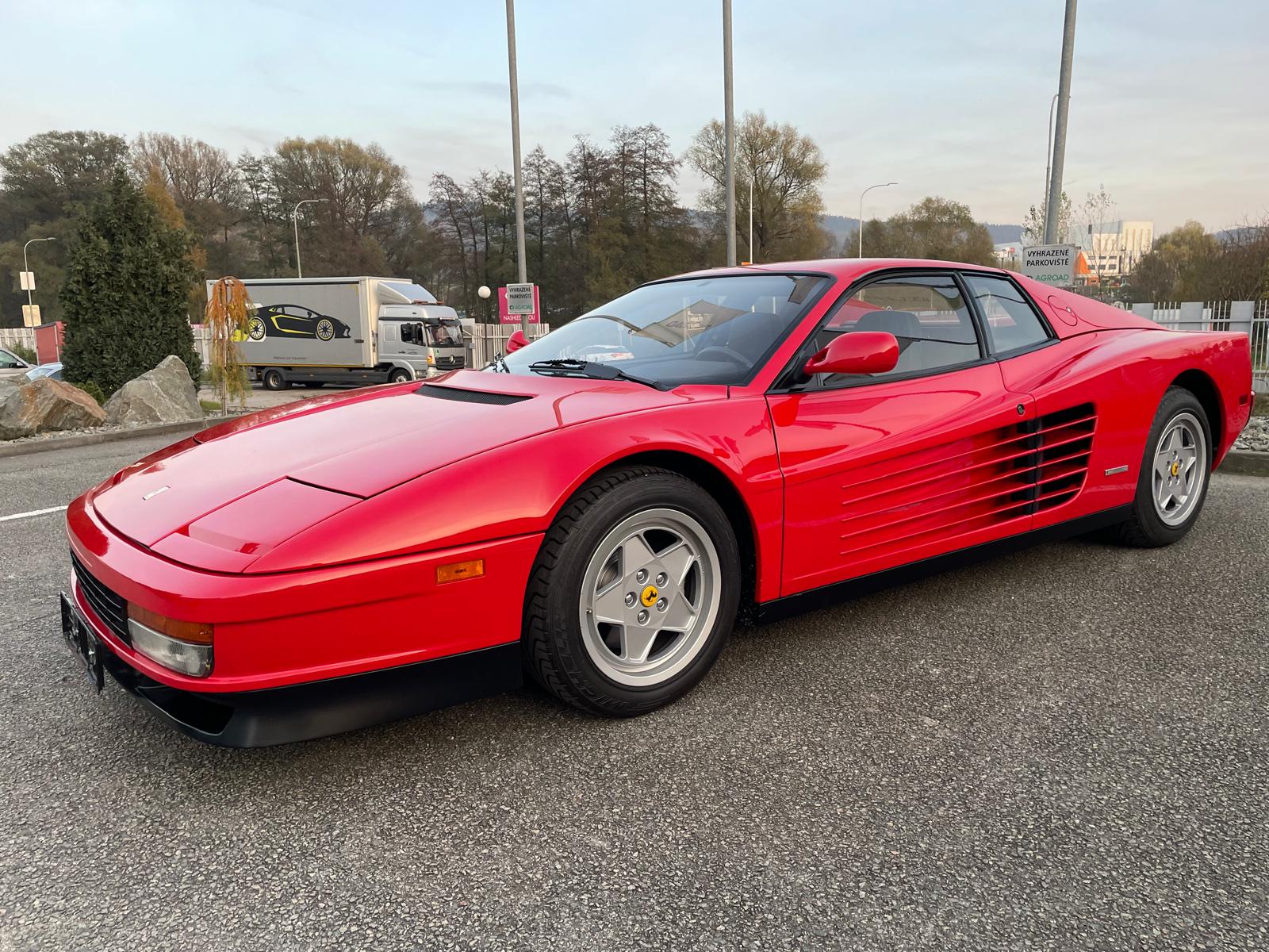 Ikonický vůz Ferrari Testarossa v klasické barevné kombinaci s americkými specifikacemi.