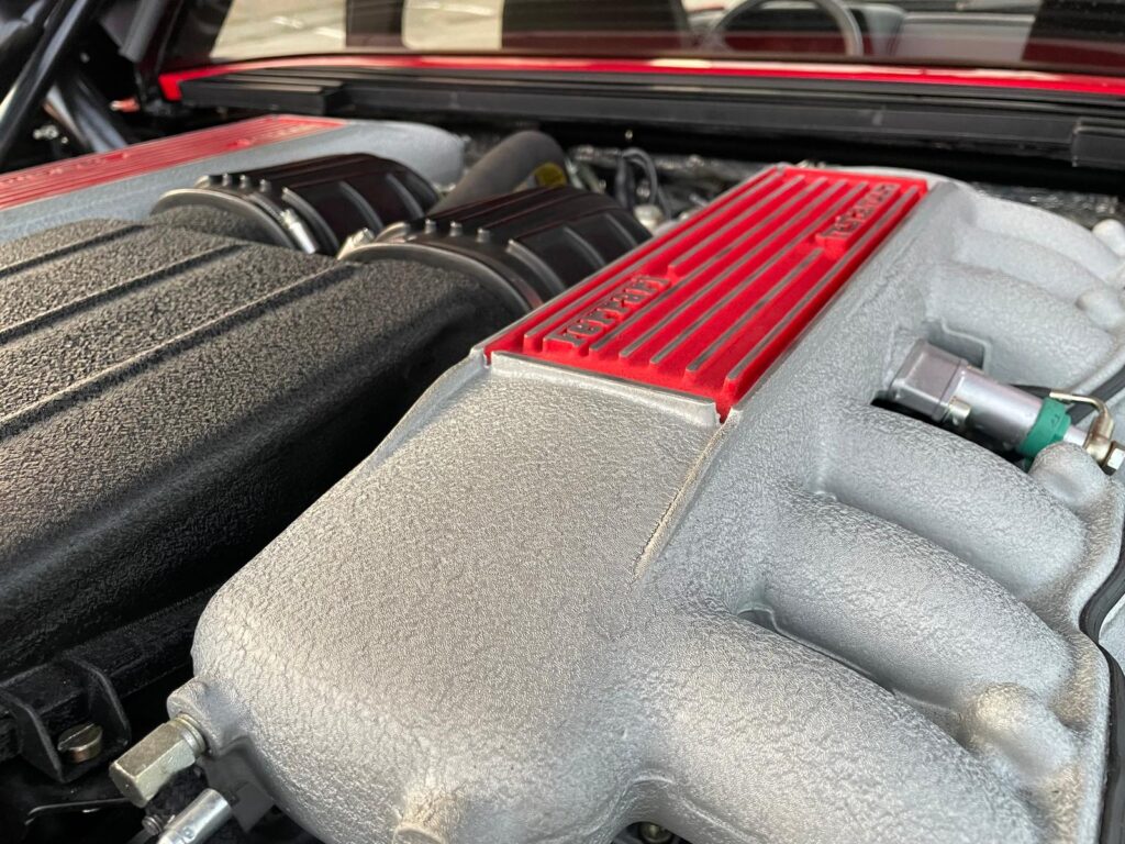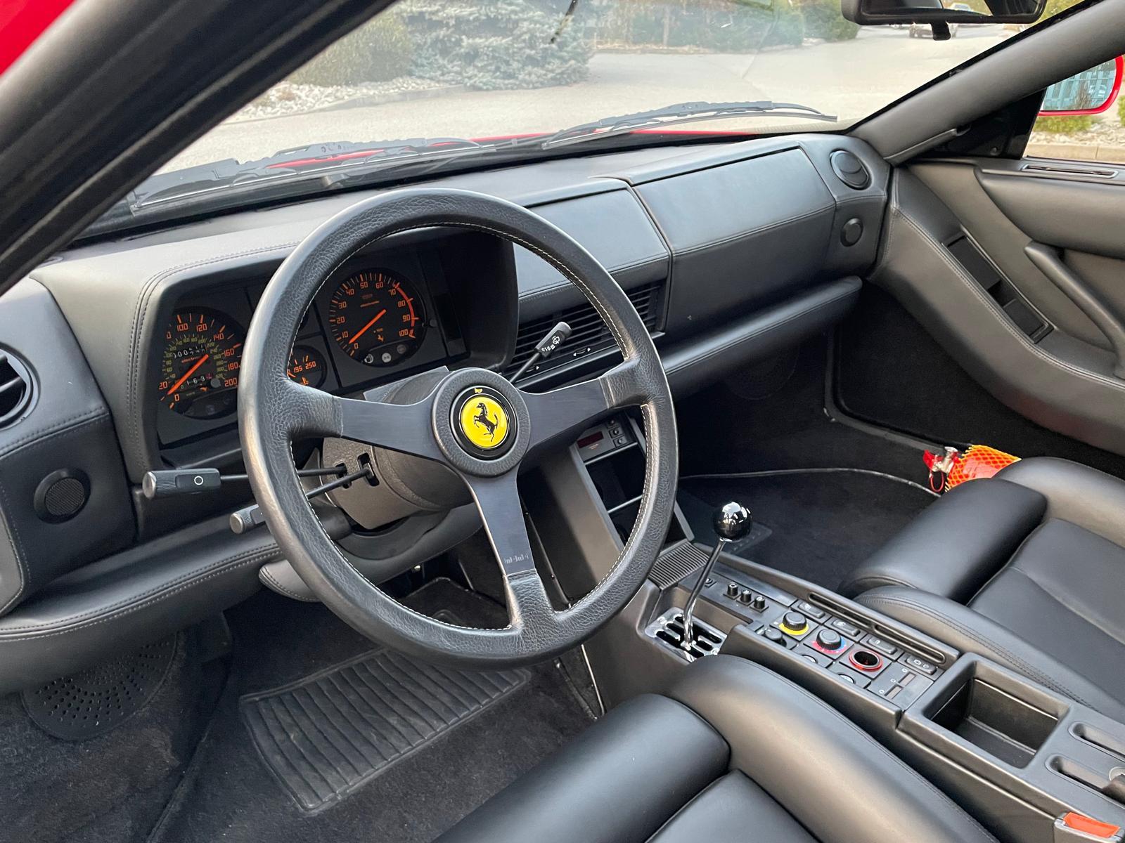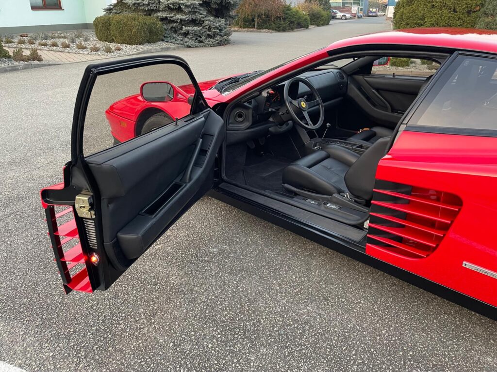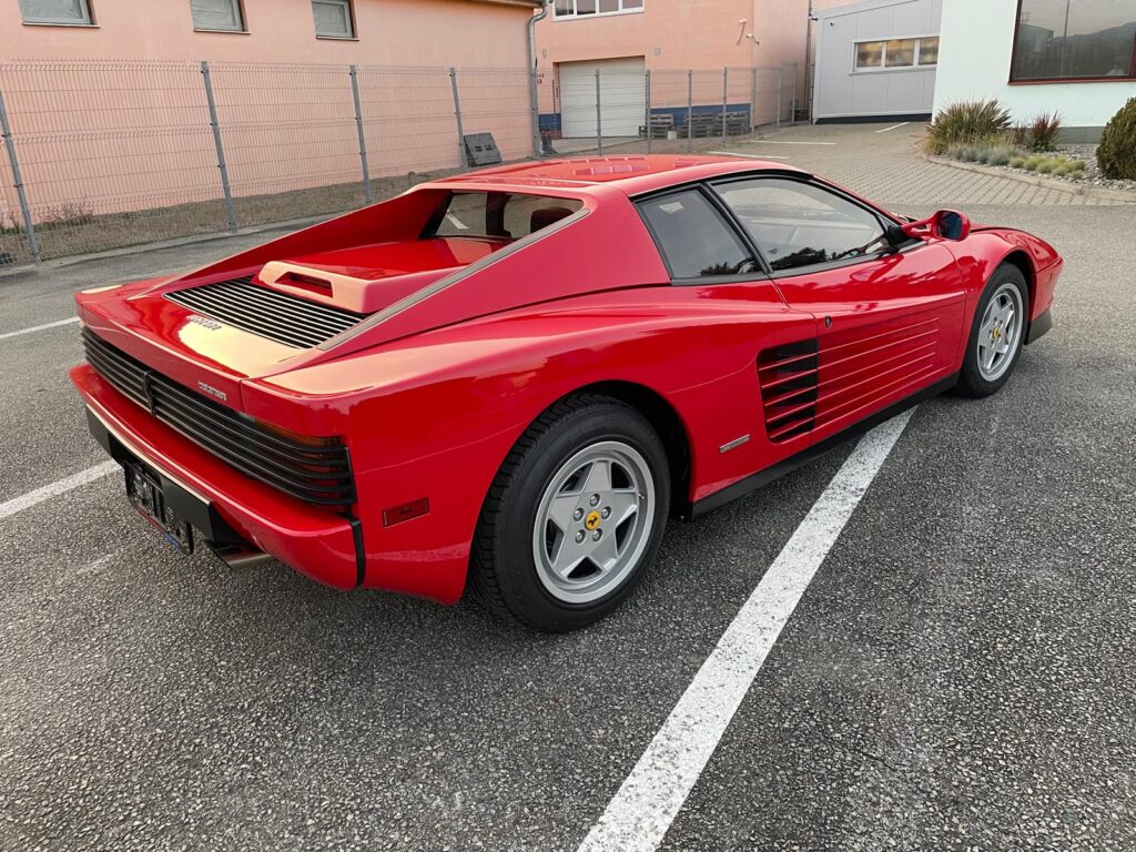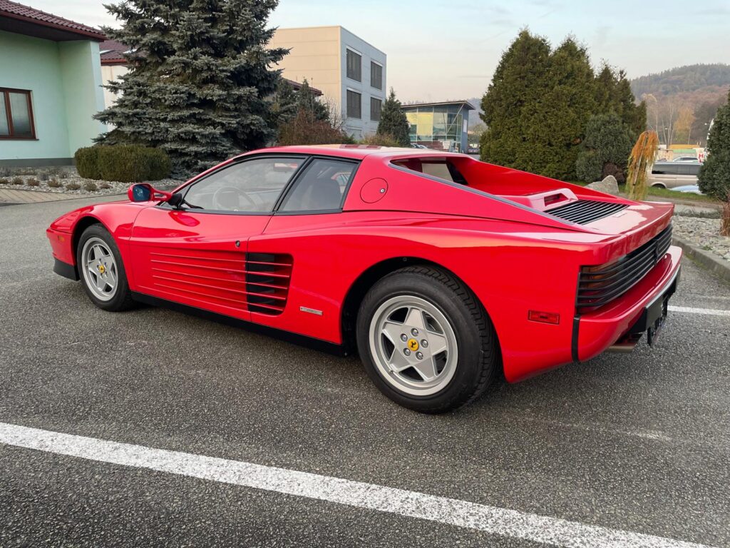 Ikonický vůz Ferrari Testarossa v klasické barevné kombinaci s americkými specifikacemi.